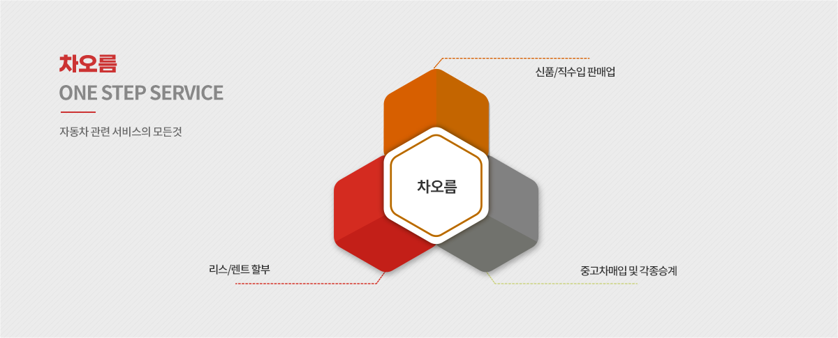 차오름은 자동차 신품 판매업을 기반으로 리스 / 렌트 / 할부 / 직수입 구매와 중고거래의 중고차 / 각종승계 까지